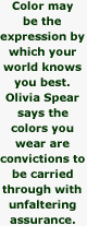 Design, like one's life, reflects careful choreography. The fashion house of Olivia Spear gracefully dances to the tune of vintage and color. Olivia Spear allows you to take the imagination to a place with no historical limits and immerse it in combinations of color. She pushes you to grasp that sequence of color and begin to uncover paradigms of human nature.